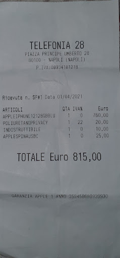 Read morePessimo negozio, si rifiutano di riconoscere la garanzia dei prodotti Apple per il secondo anno affermando che la garanzia sugli stessi sia di soli dodici mesi , a meno che non vengano acquistati presso un Rstore. FALSO!!! La garanzia è SEMPRE di due anni: il primo coperto direttamente da Apple mentre il secondo a carico del venditore. PER LEGGE !
