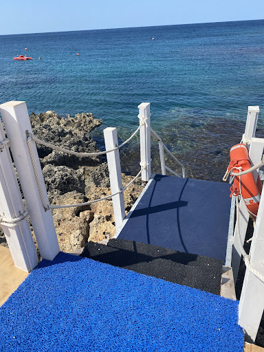 Read moreParcheggio gratuito e vicinissimo alla struttura, si tratta di una piattaforma in legno con ombrelloni e lettini direttamente affaccianti sopra una caletta nella spiaggia rocciosa sopra la riserva naturale. Acque limpide e fresche, posizione invidiabile, scalette molto comode per entrare in acqua direttamente. Una grande delusione il servizio, anche in funzione dei prezzi, che sono alti, ma che potrebbero essere accettabili se ci fosse la cura necessaria per il cliente. Menu piuttosto limitato, sia per chi ha allergie che per chi ha limitazioni sulla carne o i latticini (cosa ormai piuttosto diffusa). Ci è stato detto che non si poteva portare cibo personale sulla piattaforma, e sono apparsi nel corso della giornata panini e sacchetti di patatine che non abbiamo visto al bar. Soprattutto, ho trovato un personale piuttosto inesperto nel gestire richieste di un pubblico esigente abituato a pagare volentieri per un servizio adeguato e non solo per un bel panorama e acque limpide. Spero che i proprietari che leggono abbiamo l'intelligenza di capire il senso di recensioni...