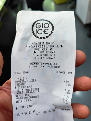 Gio' ice è una gelateria che si presenta con un locale "minimal" pulito, fresco, ordinato e con personale gentile e disponibile, tant'e che prima della scelta del gusto ho avuto la possibilità di assaggiarne più di uno . A scelta si può scegliere un cono preparato al momento, che dire buono è poco, croccante saporito ...... ottimo. Presenta una varietà di gusti "esagerata", oltre ai classici ce ne sono tanti altri e di particolari. Io scelgo oro campano e fichi e noci, buono, ad un prezzo per niente alto. Le uniche difficoltà, forse sono relative al parcheggio che si può trovare lungo la strada adiacente, e paradossalmente tanti, troppi gusti...