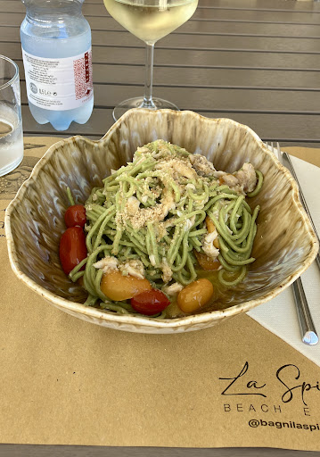 1)RISTORANTE che nonostante sia un bagno (e quindi i tavoli e le sedie sono quelli classici) la vista a due passi dal mare rende il tutto molto piacevole durante il pasto. Anche se ci sono alcuni ombrelloni davanti il posto non vuole essere ‘chiccoso’ quindi va bene; 2)CIBO una buona varietà giornaliera aiuta a scegliere più cose. Noi abbiamo preso i tagliolini con vongole e pan grattato (davvero molto buono), successivamente un fritto misto ( etteralmente spazzolato 😅 fresco e non oleoso) ed un carpaccio di pesce spada. Tutto buono; 3)SERVIZIO in cui i 2 ragazzi si sono messi a totale disposizione, veramente simpatici e sempre sul pezzo anche con qualche battuta per socializzare con i clienti. Unica cosa… essendoci due menù (uno all’ingresso ed uno digitale) se ci sono delle variazioni è utile avvisare i cambiamenti. Per il resto ci siamo trovati benissimo!; 4)In linea con i prezzi in pieno agosto in una località di mare a Noli fronte spiaggia.