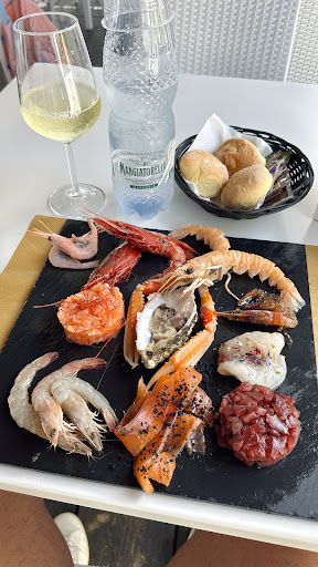 CrudiMix – Un tripudio di freschezza: tartare di tonno, tartare di salmone, salmone affumicato, gamberi rossi di Mazara, ostrica, gamberi bianchi, gamberi gobbetti con uova, mazzancolla e scampo. Ogni elemento era freschissimo e valorizzato da un’ottima presentazione. Niente fronzoli inutili: solo materia prima eccellente.