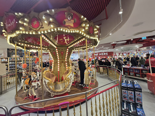 Read moreHamleys è sempre una bella catena di giocattoli. Bello l'ambiente, coinvolgente, pieno di colori, con il classico carosello al centro per far divertire i più piccoli sui cavalli colorati (a pagamento). Il negozio è fatto davvero bene, me lo aspettavo però più grande (non che sia piccolo). Il personale è gentile e mi è capitato più volte che all'entrata ci fosse una sorta di giocoliere a dare il benvenuto o comunque qualcuno che testa insieme ai clienti qualche gioco. C'è di tutto per tutti i gusti. Devo dire però che i prezzi dei giocattoli sono aumentati in maniera esponenziale ed è difficile non spendere una bella somma. Per il resto niente da dire. I più piccoli si divertiranno e difficilmente uscirete da lì...