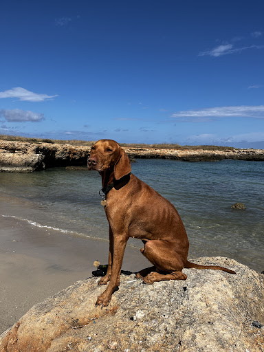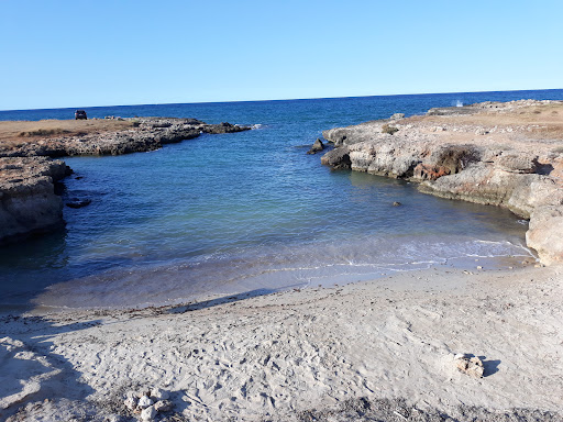 Read moreCome da precedenti recensioni, unico accesso ufficiale al mare per i cani. Nelle altre calette sabbiose chiedono l'allontanamento dei cani. Il fondo è pietoso x circa 60 mt dopo diventa sabbioso. In data odierna i primi arrivati - mentre facevano il bagno - sono stati derubati di tutto da persone arrivate e poi scappate in auto. Onde per cui prestare attenzione e presidiare il proprio posto e le auto sempre in vista se possibile. La caletta riceve molte alghe: il mare mosso degli ultimi 3 gg ne ha portata una quantità tale per per accedere al mare bisogna calpestare 3 mt di larghezza e un metro circa di altezza di spessore di alghe con odore fastidioso per tutto il giorno. I cumuli di alghe ai lati della spiaggia dimostrano la pulizia da parte del comune di Ostuni. I cartelli della bau Beach consigliano cani legati al guinzaglio - come da recensione precedente - il buon senso e la conoscenza del cane dovrebbero prevalere. ......