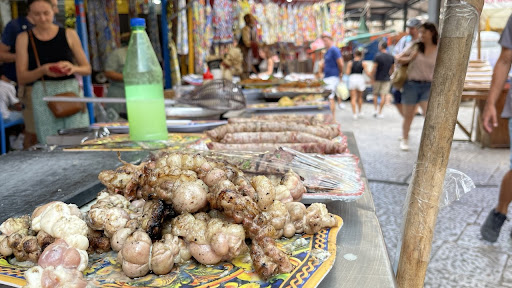 Passeggiando tra le bancarelle, troverete di tutto: dal pesce freschissimo alla frutta e verdura locale, fino a formaggi, spezie e dolci siciliani irresistibili. Gli ambulanti richiamano i passanti con grida e battute, creando un’atmosfera unica e coinvolgente. Non mancano i prodotti tipici come le panelle, i crocchè e l’arancina – perfetti per un assaggio di street food locale.