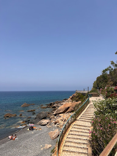 Read moreWunderschöner Strand mit Kies und Felsen. Wir waren an einem Montag, Ende Mai dort, also noch keine Hochsaison und er war, bis auf ein Pärchen leer. Das Auto muss an der Strasse geparkt werden, was etwas schwierig ist, bei einer so kurvenreichen Strecke. Es gibt keinen Parkplatz. Eine Treppe nach unten, zum Beach muß man überwinden, also weniger Rolli-geeignet, Kinderwagen vielleicht zu zweit machbar. Die letzten 6-8 Stufen sind ziemlich steil. Im Meer, bei den Felsen schwimmen die verschiedensten Fische in unterschiedlicher Farbenpracht (gelb, blau, silbrig). Schnorchelbrille kann man schon mit nehmen. Wasser ist sehr klar. Bei passendem Wetter sicher nochmal...