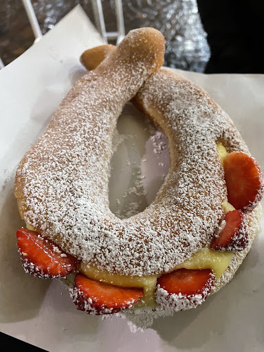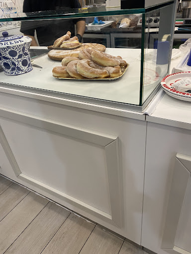 Nel periodo invernale e primaverile mi piace molto gustare la zeppola di Zio Savino: leggera e caldissima (fritta al momento, per cui si può scegliere di mettere lo zucchero semolato, a velo o niente). Molto gustosa se riempita con crema al pistacchio o crema chantilly con amarene o fragole fresche. Sono altrettanto ottimi i cornetti e i cannoli (riempiti al momento con ricotta su un letto di cioccolato o di pistacchio, guarniti di granelle). I PREZZI sono straordinariamente bassi!!! Per questo motivo a volte capita di dover fare una bella fila perché in molti ordinano CARTOCCI. Fuori ci sono anche un paio di tavoli alti per poter consumare. Il locale interno è non usuale per il suo design, in particolare sono carattetistiche le scritte sul muro e la forma degli oggetti appesi al lampadario....