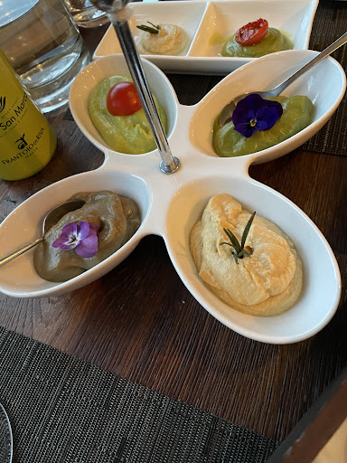 Appetizers. I didn’t like the consistency of this dish (hummus, moutabel, baba ghanouj and zucchini). Every dip had same consistency, which was absolutely wrong for this food names. And it reminded a puree for kids. However, this is the end of my disappointment and I still give this restaurant 5 stars because of meat, oh , this meat. I ordered fillet di fassona well done. It was perfect. It wasnt rubberish, it was very easy to chew, the potatoes were paradise. The service was great. The atmosphere is absolutely lovely. The view on second floor was beautiful. I truly...