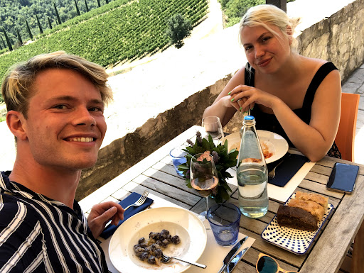 We came for the wine tasting in the afternoon and were very impressed by the quality and sophistication of all levels of wine they had to offer us! The Il Blu was our favorite with a smooth, deep bodied character, complex aromas and a slightly dry finish. The entry level Chianti Classico was also leagues above the quality of young “classicos” we’d tried at other wineries in the area.