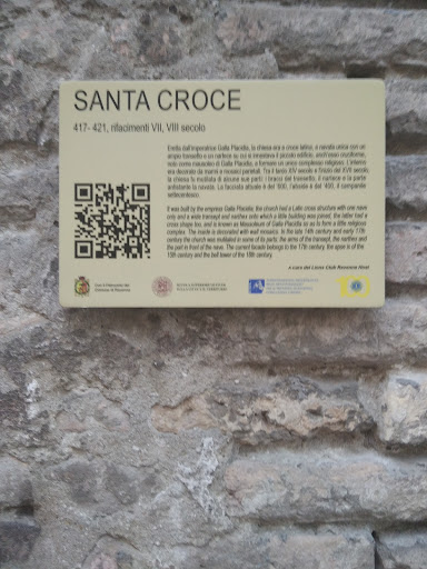 Read moreVista oggi, la chiesa non direbbe granché perché è stata completamente stravolta rispetto alle origini. La facciata attuale è del XVII secolo e rimane defilata dai più inflazionati monumenti "di massa" ravennati, pur trovandosi appena dietro il Mausoleo di Galla Placidia. Quest'ultimo, un tempo (quand'era un piccolo edificio cruciforme) costituiva il nartece di questa Basilica formando un unico complesso religioso. La chiesa di S. Croce fu voluta dall'imperatrice tra il 417 e il 421 d. C. Subì rifacimenti già in epoca alto medievale, nel VII e VIII secolo. La Basilica aveva pianta a croce latina, con un'unica navata e transetto; aveva pavimenti mosaicati ed era impreziosita da marmi. Tra il 1300 e il 1600 fu pesantemente modificata con l'ablazione di alcune parti (transetto, nartece e la parte antistante la navata). Si possono vedere gli scavi che hanno rimesso in luce corpi di fabbrica più antichi, alcuni lacerti musivi e si può aggirare il complesso raggiungendo l'abside del 1400 e il campanile del 1700. Bella la via su cui prospetta la facciata, un angolo poco frequentato specie dopo la chiusura...
