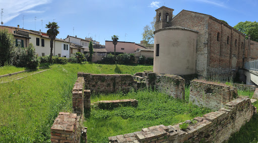 Read moreGli scavi attorno alla Chiesa di Santa croce rivelano la presenza di una villa imperiale romana riccamente decorati. La chiesa voluta da Galla placida, e costruita intorno al 420 d. C., venne edificata sulle rovine della casa. La chiesa originaria, più lunga dell'attuale, presentava un portico che inglobava il cosiddetto Mausoleo di Galla Placidia. Da notare la differenza di quota rispetto al piano stradale attuale, dovuta al fenomeno della subsidenza, ovvero dello schiacciamento del terreno che a Ravenna raggiunge oltre il centimetro all'anno. Peccato che la chiesa non sia aperta al pubblico, se non in...