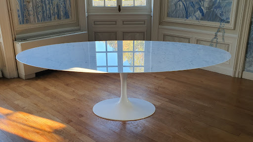 TAVOLO TULIP OVALE MARMO CARRARA SAARINEN 244 x 137 cm MADE IN ITALY This is truly the most beautiful table we've ever bought. The table was swiftly delivered and in excellent condition. The driver was very friendly and helped us moving the heavy table in our house. Beside the heavy weight, assembly was easy with the perfectly fitting screws delivered with. Prior to the table arriving we feared that it might stand unstably and might even tilt due to the huge dimensions (244 x 137 cm). Luckily, this isn't the case at all, it stands very stably on its well crafted solid foot. And it just looks breathtakingly beautiful...