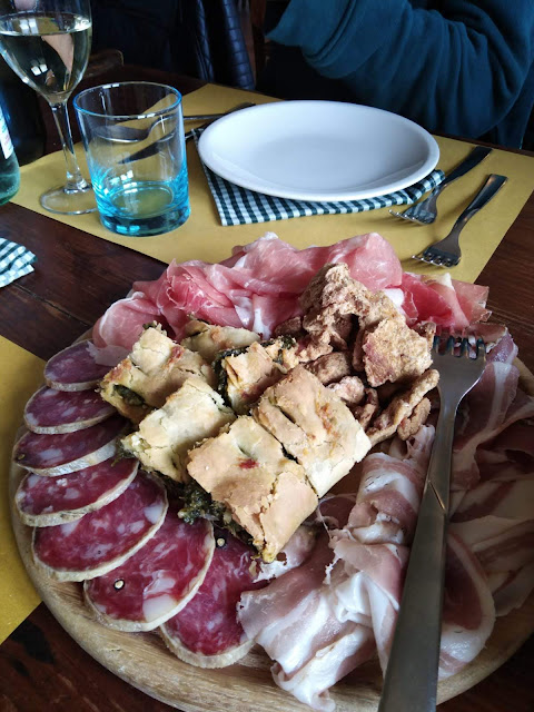 Ci siamo trovati tra ex colleghi al Rio Coviola per una bellissima serata in piacevole compagnia, allietata anche dalla simpatia del titolare e del suo staff. Il locale ha diverse sale e noi eravamo in quella principale; il menù è stato elencato a voce dalla cameriera (quindi non si conoscono i prezzi) e si componeva di pochi piatti ma tutti molto allettanti. Noi abbiamo aperto le danze con gustosi taglieri misti di salumi e formaggi accompagnati da pane e piccoli tocchetti di focaccia, per proseguire con i primi piatti tra cui gnocchetti, lasagne, cappelletti in brodo serviti in scodella e bis di tortelli verdi e di zucca, che erano piccolissimi (sembravano ravioli in realtà) ma buonissimi!!!!!!!! Qualcuno ha preso anche il secondo ma la maggioranza ha atteso il dessert, un bis di torte (cioccolatino e crostata al limone) seguito dal caffé. Durante la cena abbiamo assaggiato una deliziosa Spergola della casa e del Lambrusco. Prezzo finale onesto sia per le porzioni sia per la bontà delle pietanze. Unica pecca: metterei più illuminazione nel parcheggio poiché...