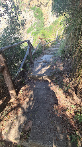 Visitata per la seconda volta in data 4 Luglio 2025. Insieme a "Praia I Focu" la spiaggia detta "'a Ficara" è, a mio parere, la più bella e suggestiva del promontorio di Capo Vaticano e di tutta la Costa degli Dei. Entrambe le spiagge sono raggiungibili via mare prendendo un pedalò, una canoa o un taxi boat dalle spiagge attrezzate di Grotticelle (raggiungibili in auto). In questo caso dovrete pagare il parcheggio a Grotticelle (15€) e il noleggio del mezzo marino di trasferimento (il taxi boat costa 10€ a persona). Oppure, se volete risparmiare e rimanere per tutta la giornata in paradiso, potete scegliere di parcheggiare l'auto presso il parcheggio gratuito di località Belvedere di Capo Vaticano (ma attenzione al disco orario) o presso il parcheggio gratuito senza disco orario appena prima di svoltare per il Belvedere (ma dovete arrivare entro le 8.30/9.00 per trovare posto a Luglio o Agosto). Da località Belvedere si scende a piedi percorrendo un sentiero che si imbocca superando la staccionata nel punto del Belvedere più verso il mare (vedasi foto). Il sentiero è ripido e sdrucciolevole e richiede l'utilizzo di scarpe da trekking: pertanto non è adatto a bambini e anziani (ma io e mia moglie l'abbiamo fatto e abbiamo 65 anni cadauno). Tempo di percorrenza medio circa 15/20 minuti sia in discesa che in salita. Una volta arrivati al mare presso le stupende calette di Praia I Focu, dove potete rinfrescarvi facendo un bel bagno, dovete proseguire ancora sugli scogli verso sud (verso l'estremità di Capo Vaticano) per altri 15/20 minuti e arriverete alla Spiaggia detta "'a Ficara". A quel punto, guardando sopra di voi verso l'alto, vedrete una scalinata che arriva dritta dalla sommità delle rocce fino alla spiaggia: non siete stati stupidi perchè quella scalinata è una discesa a mare privata non accessibile dall'alto. Consiglio a tutti di portare maschera o occhialini, borraccia di acqua fresca e frutta (la spiaggia ovviamente non ha servizi). La difficoltà del percorso scoraggia la maggior parte dei visitatori ma vi assicuro che ne vale la pena e che a Luglio ed Agosto "'a Ficara" e "Praia I Focu" sono le uniche spiagge veramente godibili della zona, almeno per chi non...