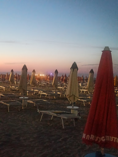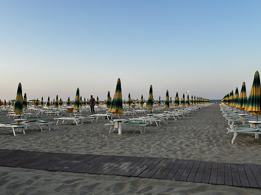 Wir sind gestern am späten Nachmittag in Rimini angekommen und wollten gleich ins Meer springen – gesagt, getan. Auf dem Weg zum Strand sind wir an der Rezeption vorbeigegangen, haben alle noch freundlich gegrüßt 😅, uns einen Sonnenschirm geschnappt und sind schwimmen gegangen.