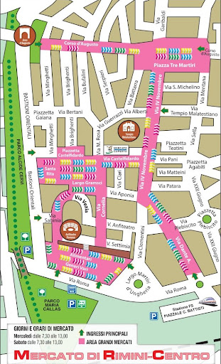 Der Rimini Street Markt im Zentrum von Rimini zieht nicht nur Einheimische, sondern auch viele Touristen an. Dort kann man frisches Obst, Gemüse, typisch italienische Produkte und viele leckere Speisen sowie Kleidung, Schuhe, Accessoires und verschiedene Waren zu erschwinglichen Preisen kaufen. Es gibt immer Sonderangebote für Markenunterwäsche.