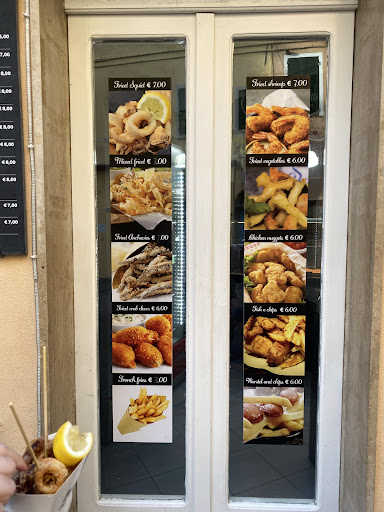 I came inside and I was a little bummed out because there were flies all over the inside of the food heaters where they put all the fried seafood. I mean, a little contamination never hurt anyone... So I did end up getting what I intended to get. I mean, it's not every day I am in Italy. I was trying to savor the moment.