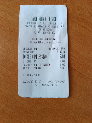 Не знам дали си струва още ценното ми време, за да открия официален начин да се оплача на италианските власти от това място! Бяхме в магазина и дъщеря ми хареса сувенирна платнена чанта. Платих я и в момента, в който продавачът ми я подаде, разбрах, че картинката е ваденка и помолих да ми върне парите. Той ми каза, че няма да го направи, защото бил записал продажбата в тетрадката си! Даже не ми беше дал касова бележка. Дойде мъжът ми, приятелите ми, настана разправия, но той отказа да ми върне парите и постоянно повтаряше да си избера нещо друго. Беше много арогантен, нахален и груб и постоянно ни показваше, че е записал продажбата в тетрадка. В крайна сметка просто взех е една чашка, поисках си касовата бележка! С такава злоба гледаше! Не посещавайте това място! След ден си купих желаната чанта на двойно по-ниска цена в уличките до Испанските стълби!!! И в крайна сметка става дума за отношение и човечност! Това е най-лошият ни спомен от Рим! Даже и 1 звезда не заслужава!