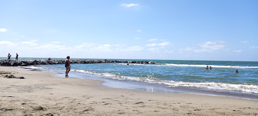 Sbocco per i locali che vogliono prendersi un paio di ore di sole in libertà senza dover sottostare ai salati balzelli degli stabilimenti del."lungo muro". Docce wc e servizio di salvataggio presenti. Poca spiaggia e, soprattutto, troppi massi per la scellerata opera di posaggio di rocce per fare un frangiflutti ormai collassato da anni con sassi sparpagliati per tutta l'insenatura. Va bonificata. Ostia deve imparare da Rimini. Potrebbe essere una risorsa foriera di grossi guadagni e crescita del territorio ma... solo l'oligopolio del lungo muro riceve attenzioni...