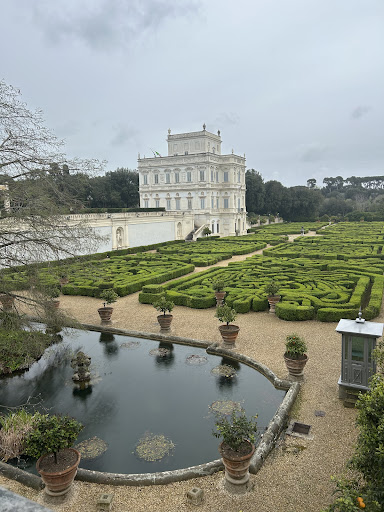 Una meraviglia da fuori, un incanto da dentro (ma all'interno è vietato fare le foto e non posso mostrare nulla, ricordatevene se lo potrete visitare). Se volete una visione d'insieme dovete recarvi nel cosiddetto "Giardino del Teatro" che si trova alle sue spalle, a un livello inferiore e che è un'area accessibile del parco. Se entrate per una visita l'ingresso non è quello sull'Aurelia (riservato alle delegazioni) ma su un vialetto interno al parco. Noto come Casino delle Allegrezze o delle molte statue per la gioia che dava e per i ricchi decori, venne realizzato in pochi anni tra il 1645 e il 1648 dall'Algardi e da Grimaldi (i giardini completati due anni dopo), ispirandosi a Villa Medici e prelevando i materiali dalla vicina Tivoli per la famiglia dei Pamphili, gli stessi che possiedono il palazzo su Piazza Navona. Si occupò di seguire i lavori soprattutto Camillo, il figlio scapestrato della famosa Pimpaccia. I bracci laterali non furono mai realizzati ecco perché l'edificio è alto e stretto sebbene non perda armonia, grazie anche ai decori e all'attenzione ai dettagli. I saloni interni sono riccamente decorati sia dal punto di vista delle pitture che delle sculture (impressionante il vaso di alabastro che trovate all'ingresso e si illumina in una data ora di un certo giorno dell'anno). Il piano inferiore dal quale si accede al giardino segreto è addirittura più bello di quello superiore e ci sono un paio di sale che lasciano a bocca aperta. Le siepi che si ammirano nel giardino all'italiana riproducono giglio e colomba, i due simboli araldici della famiglia (e le siepi di bosso sono ancora tagliate a misura e lo ammirerete dall'alto). Un'opera barocca che conserva tratti di classicismo e non eccede nello sfarzo, almeno esternamente, con il viale di accesso che è un esempio di armonia e una vista sul cupolone mozzafiato. A fianco anche i resti di un colombario di epoca romana di Scribonio Menofilo: per vedere la fontana di Venere, o quel che ne resta, dovrete uscire perché è situata fuori, nel Giardino del Teatro che un tempo era parte della villa nel suo complesso. Per motivi di sicurezza dovete astenervi da qualsiasi scatto quando siete dentro (anche quelli rivolti all'esterno, pure se sarete tentati di farli) ma la visita, prenotabile tramite richiesta secondo le indicazioni date sul sito, merita assolutamente perché è un gioiello che siamo riusciti a recuperare dall'invasione francese (rimase danneggiato), dal degrado e anche dalle mire di un ex presidente del Consiglio che voleva farne la propria residenza privata: per fortuna oggi è la sede di rappresentanza del Governo per le visite ufficiali. Vi ho dato utili informazioni? Lasciate un like alla recensione e guardate le altre che ho...