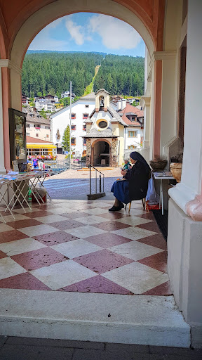 Read moreThe Parish Church of Ortisei, dedicated to Saint Ulrich of Augsburg, was built in 1793 as a single-nave structure. Due to population growth and artistic flourishing in Val Gardena, it was expanded between 1905–1907 with two side chapels. Celebrated on July 4, Saint Ulrich is the patron of travelers, fishermen, and winemakers. The church, a late Baroque gem, features flat domes, an onion-shaped bell tower, and ornate interiors. Highlights include frescoes, carved pews, and sculptures by the Moroder family, notably the “Adoration of the Magi” and Saint Elizabeth with a beggar, awarded in...