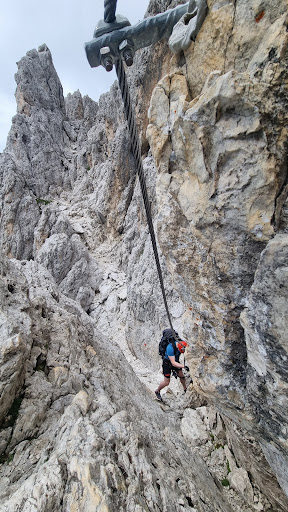Read moreChiamarla Via "Ferrata" Ú una esagerazione. à un'alta via di montagna su roccia molto panoramica e divertente (assolutamente non adatta a tutti, anzi) con solo alcuni tratti attrezzati con cavo d'acciaio di assicurazione e scalette di tanto in tanto. In alcuni punti i supporti sono del tutto inutili (forse per l'inverno con la neve), mentre in altri dove avrebbe avuto senso averne per sicurezza...