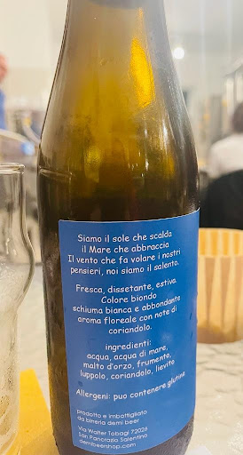 Read moreOrdinato le birre qui dopo essere stata in vacanza in Salento e averle provato. Consiglio soprattutto quella fatta con acqua di mare che ci ha letteralmente stregato. La birra si chiama Blue Sea. Se volete portare il Salento a...