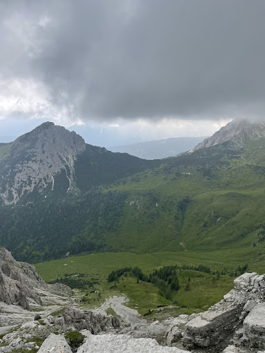 2246 m visok vrh z razgledom na Val Visdende smo dosegli po dolgem vzponu od P Bivio Ciadon, mimo casere Londo in ker ni oznake za sedlo Forcela Longerin, smo spregledali stezo na levo, ki je zelo slabo vidna smo nadaljevali do Passo Palombino in po melišču do sedla in na vrh. Pod vrhom sta dve stezi, desna varianta je lažja, leva je po skalah s prepadnimi grapami. Kar dolg vzpon z lepim razgledom na celo dolino in vsemi malgami nad dolino. Nabirali smo tudi borovnice in srečevali...