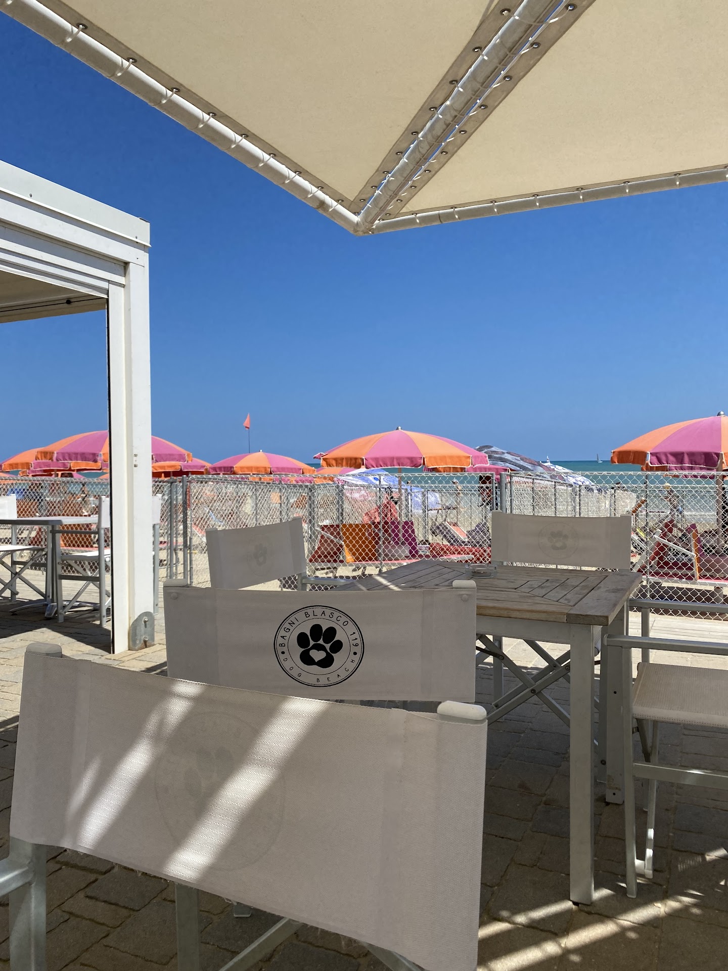 E' la soluzione perfetta per una vacanza con il proprio pelosetto, piccolo o grande che sia. Il cane può stare in spiaggia per tutta la durata di apertura giornaliera del bagno e può anche accedere alla battigia e al mare (canale in mare delimitato da boe ma molto largo). Si può scegliere tra la normale sistemazione ombrellone/lettini oppure, come abbiamo scelto noi, i box recintati con ombrellone e lettini, dove il cane è più libero e si può andare al bar o entrare in mare senza la preoccupazione che il cane scappi o faccia danni. La soluzione con i box è assolutamente geniale e innovativa, Debora e Raffaele, gestori del bagno, hanno avuto un'idea eccezionale. Ovviamente ci sono regole da rispettare visto che la spiaggia è di tutti ed il bagno ospita anche clienti senza cane. Siamo stati davvero soddisfatti di questa scelta, trascorrere l'intera giornata con il proprio cane senza pensarlo solo in camera o in appartamento è impagabile. Il bagno è provvisto di bar con tavolini e sedie, fanno un caffè...
