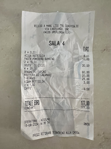 Read moreMi duole scrivere una recensione negativa sul nostro pranzo di Ferragosto presso questo lido. Premetto che eravamo ben consci del fatto che fosse Ferragosto e che per questo la qualità della cucina e del servizio spesso non rispettano le aspettative. Eravamo in 4 + 1 bimba e per il nostro pranzo abbiamo ordinato 2 soutè di cozze da dividere in 4 e per tutto punto abbiamo ricevuto cozze per la maggior parte chiuse e quelle poche aperte palesemente non cotte a sufficienza. Per questo motivo abbiamo chiesto di portare indietro entrambi i piatti (con annesse scuse del cameriere) però ci sono state portate altre cozze crude e chiuse che abbiamo mangiato solo in minima parte, mandate poi indietro. Per primo piatto 4 spaghetti alle vongole che ahimè, non erano spaghetti, ma scialatielli (buoni per carità ma non scrivere spaghetti) inoltre il prezzo non rispettava la quantità del piatto. Per la bimba di 2 anni abbiamo ordinato un piatto di pasta in bianco con olio e parmigiano che alla fine ci è stato fatto pagare €10 sotto dicitura “pasta al pomodoro”. Per secondo piatto abbiamo ordinato una frittura di calamari da dividere il cui prezzo, di nuovo, non rispettava la quantità del piatto, ovvero €20. A fine pranzo ci siamo recati alla cassa, allego foto scontrino e dei piatti. In conclusione, abbiamo più speso che mangiato. P.s il parcheggio del lido chiudeva alle 19 perciò,arrivando da Bologna come turista, non ho avuto la possibilità di guardare il tramonto nel giorno di Ferragosto. In conclusione esperienza da dimenticare,...