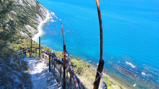 La spiaggia non è male, un po' sporca in alcuni punti. Pietre (piuttosto grandi) e sabbia. Consiglio scarpe da mare per scendere in acqua. Come un po' tutte le spiaggette della zona si raggiunge con un po' di cammino a piedi, per un sentiero stretto che parte dal lato sinistro della "Osteria della Vedova". Si scende per una serie di "scale di fortuna" abbastanza stabili nonostante l'aspetto (manutenute dai "grottaroli", ossia i proprietari delle "Grotte", le costruzioni sul lato della montagna prima usate come ricoveri per le barche dei pescatori). È anche frequentato da famiglie del posto che raggiunge la spiaggia con barche e gommoni. Il sole cala presto, in alcuni punti dopo le 15.00. Spostandovi un po' a nord lungo la costa, oltrepassando la spiaggia di pietre, potete raggiungere il punto [ HHX3+9W Ancona, Provincia di Ancona, Italia] che è dove il sole cala più tardi. È un luogo interessante, ne vale la pena....