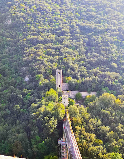 Read moreIl ponte delle Torri è un ponte ad arco derivato da un acquedotto romano sito a Spoleto. La struttura scavalca il tracciato del torrente Tessino e ricollega ciò che l'attività tettonica e l'erosione lineare del torrente hanno diviso. Ai due estremi del ponte si trovano due fortezze, la Rocca Albornoziana e il Fortilizio dei Mulini, eretto per vigilare il ponte e attivo come mulino fino al XIX secolo. Il nome Ponte delle Torri potrebbe alludere alle torri delle due fortezze o all'aspetto dei piloni. Si innalza su nove possenti arcate, ha una lunghezza di 230 metri e un'altezza di 80. Le dimensioni massime di alcuni pilastri alla base sono di metri 10 x 12. Piloni e arcate non hanno misure costanti: i piloni verso il Monteluco sono più massicci degli altri e sono rinforzati da arcate poste circa a metà della loro altezza; anche lo spazio tra le arcate è diverso, minore rispetto alle corrispettive verso Sant'Elia. La loro diversità fa pensare che siano stati costruiti in periodi diversi. I due piloni sorgenti dal fondo della valle sono vuoti e praticabili, al loro interno alcuni ambienti che fungevano da postazioni di guardia, con finestre e porte d'accesso situate a pochi metri da terra; nel tempo sono stati un sicuro rifugio diurno e stagionale per vari chirotteri. Sopra la struttura si erge un muraglione alto circa 12 metri che delimita la strada sopra il ponte per tutta la sua lunghezza; sulla sua sommità in un canale scavato, scorreva l'acqua che, proveniente dagli acquedotti di Cortaccione e Patrico, riforniva la città. In origine era completamente chiuso, solo nel 1845 è stato aperto il panoramico finestrone centrale a cura del gonfaloniere Parenzi; il parapetto antistante invece, alto circa un metro, è stato costruito sul finire dell'ottocento. Divenuto famoso anche per la...