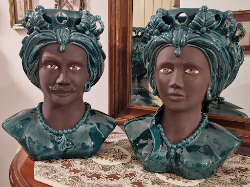Read moreSiamo una coppia di siciliani a Torino e a casa nostra amiamo esporre oggetti di artigianato della nostra Terra. Non pensavamo che esistessero delle teste di moro adatte al nostro arredamento moderno e avevamo un po' abbandonato l'idea di averne. Poi ad agosto siamo passati davanti al negozio di Aretusa Souvenir a Ortigia e ci siamo illuminati! Non solo esistono ma sono anche bellissime e di ottima fattura! Mirko e Valeria sono due veri professionisti: dall'allestimento del negozio (impossibile passare da quella via senza esserne rapiti) all'efficace utilizzo dei social con foto affidabili dei prodotti acquistabili, dalla cortesia per le informazioni e le esigenze dei clienti all'organizzazione impeccabile per confezioni regalo eleganti e imballaggi sicuri per le spedizioni. Dopo alcune esperienze negative con altri negozianti di souvenir probabilmente improvvisati e poco esperti, possiamo dire di aver trovato il nostro negozio e i nostri professionisti ideali per i nostri acquisti di artigianato siciliano! Consigliamo sia la visita del negozio a Siracusa sia l'acquisto a distanza con...