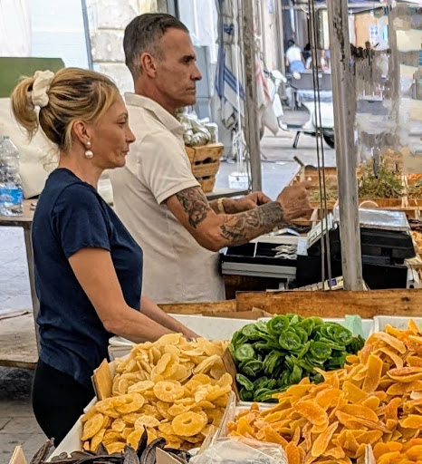 Sunday 5 May 2019 to Sunday 12 May 2919 This is an incredibly busy outdoor market selling all manner of fresh fruit, vegetables, fish and meat. Just don't trying buying sun cream here. (Like one tourist tried to do!) We bought a big bag of sun dried tomatoes (€9.00) and a big bag of black olives (€6.50) from one stall. The owner vacuum packed our purchases at no charge. We also bought two medium sized flat boxes of capers (€10.00 each) and three big bags of chilli flakes (€3.00 each) from...