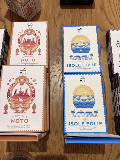 Read moreI am often in Ortigia and I always bring my friends and acquaintances to the shop. Chiara and the rest of the team are friendly and professional. They explain how the chocolate is made and are always happy to share their samples. The chocolate is crafted here in Sicily. It is unique, delicious, and makes the perfect gift so you can share a bit of your vacation with those you love! I highly recommend the experience and you will certainly find a flavor for you and all the chocolate lovers in your life! Another positive is that unless the wrapper lists latte (milk) on it, the chocolates are vegan-friendly so everyone can...