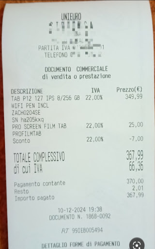 Terribile esperienza, giorno 10 Dicembre 2024 vedo un Tablet Lenovo p12 da 256 GB 409€ su Amazon. Mi accorgo che su Unieuro anche Mediaworld era €349,99 allora vado da Unieuro dato che da Mediaworld ho avuto già una terrificante esperienza. Compro il tablet mi dice se voglio la pellicola te la faccio 20€ allora gli dico va bene. Messa in modo sbagliato, ma ormai mi dice é messa non si può fare niente vado a pagare la ragazza gli dice facci lo sconto mi dice 20€ all'ultimo mi fa pagare 18€ va bene lasciamo stare. Giorno 10 di sera ho comprato il tablet giorno 12 ci vado perché aveva problemi. Era tutto bloccato, nonostante avevo fatto l'aggiornamento. Non mi funzionava modalità aereo, anche un'altra cosa tipo della luminosità non funzionava. Allora restettiamo il tutto, sono stati gentili ed educati questo posso dirlo sinceramente. Però mi dicono di riprovarlo. Dopo 2 giorni ci vado perché mi dava problemi! Allora mi dicono rimborso non ne facciamo. Tablet non ne hanno più uguale. Però posso ordinarlo sul sito di Unieuro per farlo arrivare in negozio. Mi fanno un buono valido solo 2 mesi. Mi sono accorto dopo della cosa, io con i miei soldi ho 2 mesi di tempo. 🤣 Esempio Euronics mi ha detto che il suo buono dura 1 anno. Comunque il tablet non è più in offerta. Se lo voglio devo pagare 50€ in più per ordinarlo dal sito. 😅🤦 Il bello che per telefono la ragazza mi ha detto se aspetto forse lo rimettono in offerta non lo sa?! Mentre ho solo 2 mesi di tempo assurdo. Sono gentili ed educati, però prendono in giro. Hanno delle direttive assurde! Il tablet dovevano sostituirmelo subito. É tutto fatto apposta. Loro sanno i giorni che gli oggetti stanno in offerta! Una volta mi sono litigato con il proprietario di Mediaworld perché la gente che lavorava per lui fa cose assurde! Infatti poi mi ha dato ragione. Adesso mi sto informando con il servizio consumatori vediamo come procedere?! Adesso vedrò di parlare con un avvocato per vedere come muovermi. Dovrei parlare mi sa con il proprieatario. Comunque chi lavora da Unieuro segua delle regole assurde che gli impongono. Mi accontenterei cambiare lavoro che fare questo! Se compravo da Amazon in questo momento avevo i soldi in tasca, così potevo decidere dove comprare. Infatti mai più, dopo questa terribile esperienza. Anche perché lo sconto rispetto ad Amazon era solo in questo tablet. La maggior parte dei prezzi sono troppo alti rispetto ad Amazon. Anche su eBay ho visto prezzi veramente ridotti. Figuratevi che stanno vendendo da Unieuro in negozio il Redmi pad pro 128 GB 330€ 😱 su Amazon l'ho visto da 256€ €250 il bello venditore Amazon spedizione Amazon quindi chi lo compra può stare tranquillo! Su eBay il 256€ é stato 223€ invece il 128 GB 188€ Comunque Ho comprato nel 2023 un tablet da Amazon. Dopo 4 mesi non si accendeva più. Mi hanno rimborsato...