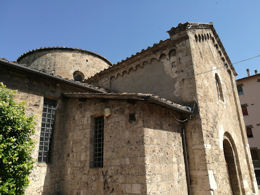 La chiesa di San Salvatore è il più antico monumento cittadino, un edificio di culto composto da un corpo circolare a cupola cilindrica, chiuso da arcate, risalente con tutta probabilità all'epoca paleocristiana. La struttura è costituita da una navata rettangolare a doppia campata, ampliata da una cappella laterale e da un presbiterio a pianta circolare chiuso da una piccola abside rettangolare. Ciò che caratterizza l'edificio è la sua semplicità strutturale, pareti lisce all'interno come all'esterno, realizzate con buona tecnica di lavorazione della pietra, a conci ben squadrati e allineati. La navata a due campate, divise da un arco traversale, è coperta da volte a crociera. Enigmatici sono il presbiterio rotondo e l'abside rettangolare: infatti non si conosce con esattezza la loro datazione né la particolare funzione, se mausoleo, oratorio o battistero. All'interno troviamo affreschi della prima metà del XII secolo d'influsso senese e nell'abside una Crocifissione di scuola umbra dei primi del...