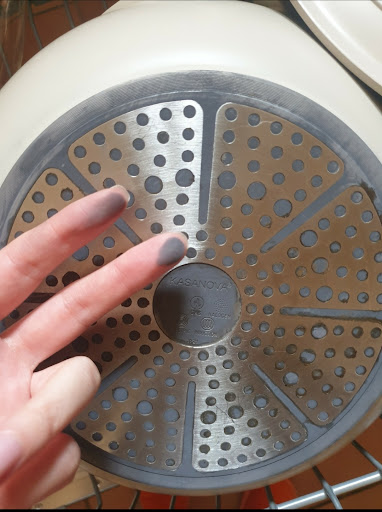 La padella in questione rilascia una polvere grigia, anche dopo un accurato lavaggio, che sporca canovacci, tavoli e piano cottura. Ho contattato il servizio clienti Kasanova, allegando foto e video che dimostrano il problema, e la risposta che ho ricevuto è stata a dir poco sconcertante: mi è stato detto che è "normale" che una padella in alluminio rilasci questa polvere e mi è stato offerto un misero sconto del 10%.
