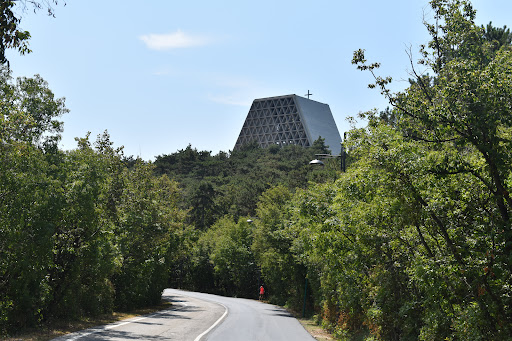 ENGLISH: The National Temple to Maria Madre e Regina represents a Catholic Marian sanctuary, a few km from Trieste. Recognizable by its very particular shape of juxtaposed triangles (for the people of Trieste called "the cheese"), the sanctuary is located above Monte Grisa and dominates the whole landscape.