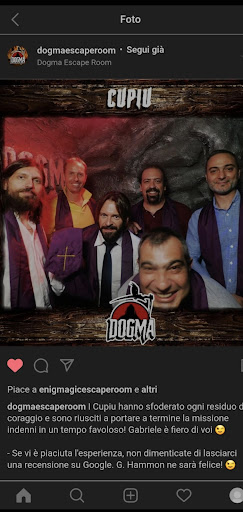 Read moreAbbiamo provato questa escape room in gruppo da 4, con l'aggiunta dell'attore. L'ambientazione è semplicemente stupenda: curata nei minimi dettagli ci ha catapultati in un'atmosfera completamente immersiva. L'accoglienza è stata divertente e già parte del gioco. Gli effetti personali sono custoditi in modo sicuro in un mobile sotto chiave (che fanno tenere a voi). Gli enigmi sono stati una sfida stimolante, mai banali. Quando abbiamo incontrato qualche difficoltà ci sono stati forniti indizi senza svelare la soluzione per aiutarci a proseguire. Il tema e gli enigmi sono perfettamente integrati nella trama in modo creativo e coerente con l'ambientazione. Ma è stato l'attore a rendere l'esperienza indimenticabile: era bravissimo e ha saputo creare un'atmosfera di tensione e paura che ha reso il gioco ancora più coinvolgente. Siamo sicuri che sarebbe stata un'esperienza divertente anche senza l'attore, ma la sua presenza ha aggiunto un tocco in più che ha reso tutto ancora più divertente. È stata la prima escape room di tutti noi, e molto probabilmente sarà difficile trovarne un'altra che riesca a eguagliare questa. Ho vissuto un'esperienza indimenticabile con le mie persone...