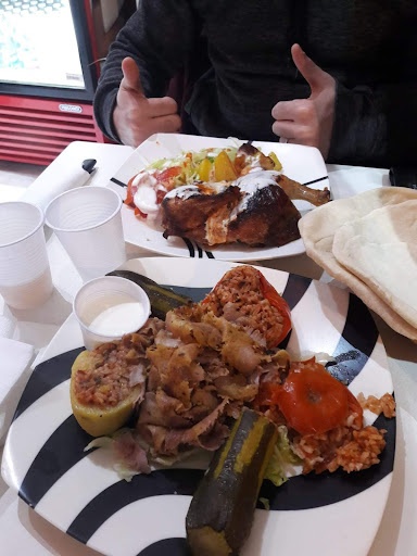We were looking for something easy to eat and we found this place. When we came in we were helped immediately by a very nice person. He offered us the menu, cleaned our tables and made sure everything was to our liking. We had some questions about the city. He not only answered them, but also gave us some extra tips. We've had delicious food that came in large portions. When we were done he gave us some tasty Egyptian thea for free. We could only pay with cash which was the only minor con we encountered. The service you get completely outshines your typical kebab place. I'd recommend it...