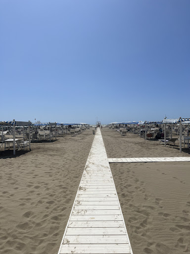 Sono approdata in questo stabilimento 2 anni fà e devo dire che ne sono rimasta entusiasta. Il bagno è molto grande, e molto ben tenuto. Gli ombrelloni sono ben distanziati fra loro così da non dare quella sensazione di soffocamento che mi capitava negli altri bagni che ho frequentato. C'è una grande piscina dove vengono tenuti corsi di nuoto per bambini e lezioni di acquagym, un' area giochi per bambini, un bel giardino con qualche ombrellone dove schiacciare una pennichella dopo pranzo e ben 6 campi per giocare a beach tennis o beach volley. Per quanto riguarda il cibo, ci sono una vasta gamma di opzioni: dal panino all'insalata per chi vuole una cosa più veloce, al ristorante, che propone piatti niente male e che ha anche qualche offerta per vagetariani/vegani. Wi-Fi e grande parcheggio chiuso da una sbarra (ma non pensate di arrivare alle 13 e trovare posto dentro). Vengono spesso organizzati degli eventi, per lo più di tipo sportivo che rendono il bagno molto vivo. Ovviamente , se cercate calma e relax, questo può essere considerato anche un contro, perchè in certi momenti la situazione soprattutto in zona ristorante, risulta...