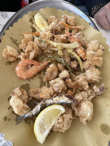 Sul fritto mi chiedo come sia possibile servire un prodotto del genere. Totalmente senza sale, al punto da doverlo richiedere, secco, asciutto, fritto ben oltre il tempo necessario, ma soprattutto una qualità veramente bassa, totani (perché non sono calamari come indicato nel menù) veramente senza sapore, di taglia piccola.