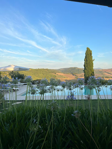 It's beyond words how beautiful the location is of this agriturismo. We were contacted by the manager before we arrived and arranged for our arrival. We stayed in its 2 bedroom apartment, Lavanda, and it had a complete living quarters with a stove, small fridge, kettle, coffee machine, microwave, plates, cups and eating and cooking utensils. Everything was very clean! You can easily buy some food from the grocery and cook it. The grocery was also nearby to drive, a 15 min drive close to Montepulciano. There is a pool, it's clean but it was cold. Luca, the caretaker, met with us the next day and gave us a box of coffee pods. There is a washer room by the big apartment across from the pool. There are drying racks available to dry your clothes. The view outside is what caught our breath. Rows of olive trees and the landscape as far as thee eye can see!...