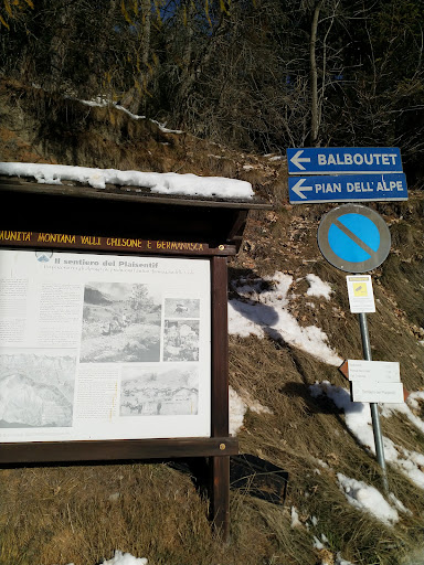 Giunti al pianoro si torna per la strada dell'andata, possibile variante passando per la borgata Montagne di Ousseaux (l'accesso alla strada è segnalato come proprietà privata) arrivando su Ousseaux anziché su Balboutet.