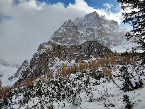 In occasione della nostra recente sosta in loco ci siamo concessi una piacevolissima escursione 🚶🏻♂️ lungo uno dei sentieri ivi presenti. Arrivati sul posto alle 13.30 🕐 circa direttamente dalla diga di Pontesei (interessantissima la visita), abbiamo parcheggiato l'auto 🚘 accanto al Rifugio Passo Staulanza (purtroppo ancora chiuso quel giorno ❌) incamminandoci 🚶🏻♂️ verso il sentiero di cui sopra (precisamente il n. 472). Abbiamo seguito lo stesso in direzione delle "orme 🐾 dei dinosauri" 🦕🦖 (un cartello 🪧 ne dava conto) addentrandoci nel sottobosco 🌲. Dopo un po' ci siamo quindi fermati a mangiare (ben organizzati con il pranzo al sacco 🌭🎒) appollaiati su di una roccia 🪨 in prossimità di un bel punto panoramico. La nostra scarpinata è proseguita poi per un'altra mezzora, prima di tornare indietro essenzialmente per ragioni di tempo ⌛. Giunti al parcheggio 🅿️, ci siamo infine rimessi in marcia in direzione del Passo Giau 🏔 (2236 m s.l.m.), altra località di assoluto interesse che consiglio 👍 caldamente. Ad ogni modo, il Passo Staulanza (1773 m s.l.m.) è comodamente raggiungibile tramite la Strada Provinciale 251 della Val di Zoldo e Val Cellina, asse viario molto gradevole da percorrere per gli splendidi scorci che riesce ad offrire (penso ad esempio alla valle del Vajont, al passo Sant'Osvaldo e al lago di Barcis 🏞). La prossima volta mi piacerebbe completare l'escursione cui si faceva riferimento, concedendomi pure un bel pranzetto 🍽 al rifugio. Unico appunto❗: non mi è parso di vedere pannelli didascalici recanti 🪧 la storia e le caratteristiche del luogo (flora, fauna ecc.); in tal senso credo proprio che qualcosa in più si potrebbe anche fare. A parte ciò, VISITA NATURALMENTE CONSIGLIATA 👍.