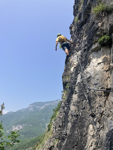 Read moreOffre una vasta scelta di percorsi di vie Ferrate. La difficoltà del percorso è indicata da uno schema colori molto semplice ed intuitivo. Il verde è quello entry level ed è caldamente consigliato a chi si accinge la prima volta ad una ferrata per la sua semplicità ma anche per fare capire in cosa consista una Ferrata. Il secondo livello sono i percorsi azzurri che presentano tratti un po' più esposti in parete, ma sempre di facile percorrenza. Noi abbiamo fatto il percorso rosso che ha anche il ponte tibetano e poi ci siamo ricollegati ad altri tratti di ferrata con colori differenti. Molto molto bello, esperienza sicuramente consigliata. La difficoltà sta più nella fatica fisica rispetto agli altri percorsi più che ad un'ulteriore esposizione in parete. In ogni caso ci sono mappe che segnano i vari tratti di ferrata e numerosi anelli di congiunzione (bivi) per poter scegliere al bisogno differenti colori (e quindi difficoltà) in base al livello di affaticamento o se qualcuno nel gruppo non se la sentisse di continuare tratti più impegnativi. C'è anche un tratto nero (di difficoltà superiore a quelli citati) che non abbiamo ancora provato ma nel quale ci cimenteremo la prossima volta. Cercate su YouTube dei video della ferrata perché c'è anche la diretta del ponte tibetano e così potete farvi un' idea della difficoltà ad esempio del percorso rosso. I tratti di ferrata sono molti e con vari collegamenti, il ponte tibetano fa parte di quello rosso ma se scegliete altri percorsi non lo trovate quindi non scartate a priori la ferrata se non voleste farlo. I percorsi sono collegati da tratti di comune sentiero. Consigliato farsi una foto della mappa all'inizio per vedere sempre tutti i percorsi possibili, lungo la ferrata in prossimità dei vari collegamenti ci sono i cartelli che indicano il colore che si sta per iniziare. Su internet consigliano anche alcune combinazioni di percorsi da fare in una volta ( noi per esempio abbiamo seguito tratti di rosso con collegamenti a verde ed azzurro per poi tornare a rosso ed è stato fattibilissimo in una...