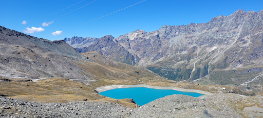 Questo lago alpino è formato da una diga e si trova vicino alla stazione di arrivo della funivia di Plan Maison. Tramite un sentiero circolare che parte proprio da Plan Maison si può circumnavigare tutto il lago. Da una parte si passa in alto e si può vedere un bellissimo panorama,dall'altra si scende alla base della diga e poi si risale, in quanto la diga non è pedonabile per il pubblico. Il colore turchese dell'acqua è bellissimo e contrasta con il giallo dei licheni che crescono tutto intorno. È una camminata non proprio facile, con continue salite e discese, soprattutto se si passa alla base della diga. Si può poi ritornare a Cervinia con la funivia o scendere direttamente in parse seguendo il sentiero. Molto bello e...