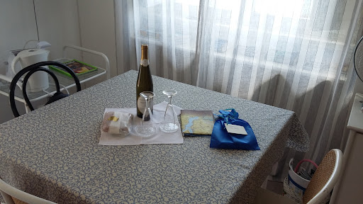 Die Unterkunft liegt im Grunde direkt am See und man muss nur eine kleine Straße überqueren, um die befestigte Uferpromenade zu erreichen. Die Uferpromenade direkt vorm Haus ist sehr schön gestaltet mit Oleander und anderen Pflanzen. Ein Restaurant befindet sich in direkter Nachbarschaft und dazu ganz wenige Lokale nur ein paar Schritte entfernt, welche wir aber nicht besucht haben. Da dieser Teil der Uferpromenade etwas abseits von dem eigentlichen "Hotspot" liegt, sind die hier die Öffnugszeiten auch so, das es hier Abends etwas ruhiger ist. Das ist aber kein Nachteil, weil so ist dann auch Nachts nicht so ein Trubel. Für alle Nachtschwärmer und Romantiker ist es aber ein idelaer Ort, denn in 6-8 Gehminuten schlendert man gemütlich auf einen herrlich angelegten Weg zu dem Teil der Uferpromenade, wo man bis spät in die Nacht kühle Drinks und vorzügliches Gelatto genießen kann. Zu mindest haben wir an einem Freitagabend, zw. 23-24:00 Uhr noch ein sehr leckeres Eis direkt am See bekommen. Das Ambiente, mit weißen Mobiliar, die gedämpfte Beleuchtung der Promenade, Kerzenschein, jede Menge schöner Blumen und Musik aus einer benachbarten Bar, waren so schön und romantisch, dass wir nach dem Eis noch eine kühle Weisweinschorle bestellt haben. Dieser wundervolle Abend, bis weit nach 01:00 Uhr, hier in Varenna wird uns als eine sehr schöne glückliche Erinnerung begleiten. Aber auch Cristina, die Besitzerin und ihre Familie werden uns als sehr liebe und freundliche Menschen in Erinnerung bleiben.