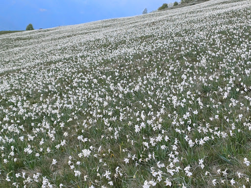 Uno spettacolo meraviglioso la fioritura dei narcisi sui prati del Monticchio. Una passeggiata dalla panoramica zegna o arrivando da altri sentieri dalla valle del Cervo o da località del biellese. Stupendo vedere tante persone che ammirano questa bellezza, la natura. Dai bimbi ai nonni....tutti attenti a non calpestare i tanti...
