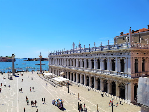It is a great pleasure to stand on the Piazzetta and observe this beautiful building, the Biblioteca Marciana. Its history and significance is extremely interesting, and its interior is breathtaking. The interior is beautifully decorated, and richly decorated with frescoes and paintings by artists like Tintoretto and Domenico Molin, its ceiling, featuring Titian’s allegorical painting, Sapienza, is widely considered the room’s most important decorative element. National Library of St. Mark is a library and Renaissance building, one of the oldest public libraries in the country and one of the largest collections of classical texts in the world. The library was named after St. Mark, patron saint of Venice. The Marciana Library stands as a symbol of the city’s wealth and its long tradition of civic investment in intellectual and artistic pursuits. The building’s construction began in 1537 and was completed over the next 50 years. The library, designed by Jacopo Sansovino, he is completed 16 of the façade’s 21 arcaded bays before his death in 1570. Eighteen years later, Vincenzo Scamozzi finished the structure according to Sansovino’s plans. Books for the library began to be collected even before the building was built. The nucleus of the collection was a donation of valuable Byzantine and Renaissance Serenissimi manuscripts collected by the scientist, patron and collector, Cardinal Bessarion, who donated his collection on May 31, 1468. It contained about 750 codices in Latin and Greek, with 250 manuscripts and some printed books (incunabula), it was the first public library open to scholars and students in Venice. The holdings of the Marciana Library were significantly enriched in the 18th century when collections were collected in several monasteries, such as Sts. Giovanni e Paolo from Venice and St. Giovanni di Verdara of Padua, handed over to Marciana for further safekeeping. With the fall of the Venetian Republic in 1797, the Marciana holdings were enriched by the entry of a large number of manuscripts and books from religious institutions (churches and monasteries) that had been banned and disbanded during Napoleon's rule. In 1811, the library was moved to the more spacious premises of the Doge's Palace. In 1904, the collection was moved to the building of Sansovinova Zecca, a mint (built in 1537-1547). The library has since returned to its original space, but has also expanded to parts of the neighboring Procuratie Nuova. Today, Marciana has about a million printed books, and about 13,000 manuscripts, 2,883 incunabula, and 24,055 works printed between...